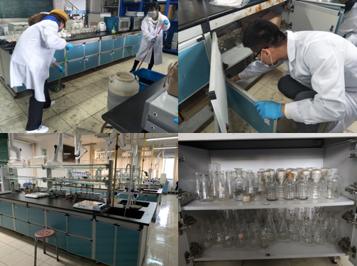 活动开始,实验室负责人余阳老师对本次参与活动的党员表示欢迎并带领我们参观实验室、说明清扫要求和注意事项。随后,支部党员分成5组进行各大实验室清扫活动,打扫的实验室包括环工实验室、环科实验室、研究生平台、化工原理实验室这五间实验室。在余老师说明了打扫要求后,支部党员穿上实验服、带上手套和口罩开始了这次的清洁任务。在将近两个小时的清扫任务中,支部各党员认真负责,按老师要求,做好了实验药品和仪器等的分类整理、清理实验台和地面等事情。在各位党员的辛苦劳动下,各实验室内的实验器材被归类的整整齐齐、井然有序,实验桌面、地板也被擦拭干净,实验室焕然一新。党员们感受到了前所未有的成就感以及为老师、同学做好事带来的喜悦感。看到整齐的实验室,同志们纷纷表示,自己的劳动能为同学带来整洁的实验环境是很值得的。