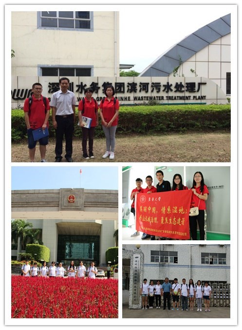 为初步了解红树林生态现状,实践团首先来到南山市环保局,通过座谈会,实践团初步获悉红树林污染现状及对于保护红树林的相关政策;为进一步了解工业废水对红树林的影响,随后,实践团走访环保明星企业--恒通源水处理科技有限公司,展开“膜材料水处理工艺前景”实践活动。实践团一行九人受到了袁曙光总经理的热情接待,召开座谈会,参观膜组件生产车间,实践团从中认识到膜材料在工业废水处理,特别是水资源的可持续开发与利用中具有重要地位及美好前景。城镇污水对于红树林湿地的生态环境有着重要的影响,实践团实地调研滨河污水处理厂,该厂区主要的生化反应池均位采用地埋式,地面上则是绿化草坪和篮球场,这大大减小了厂区面积,同时减少臭味污染,极大地改善了厂区环境。与此同时,深圳市红树林湿地保护基金会,对于此次实践活动给予了大力支持,通过与基金会马主管的交流,实践团了解到红树林目前面临的最大的威胁不是工业污染而是生活污水,这更加坚定了实践团保护红树林、治理红树林的信心。