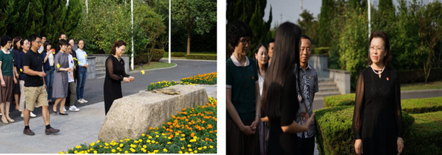 在纪念碑南面的烈士墓区里,长眠着侯绍裘、姜辉麟、顾桂龙等近200位为中国人民解放事业和共和国建设事业英勇献身的有名和无名的烈士们,通过馆长的讲解和介绍,党员们聆听了先烈们的英勇事迹,也了解了无名英雄的感人事迹被后人逐渐发掘的过程,更为这些先烈们献出的年轻生命而感到深深地感动!大家依次走到墓区刻有“忠魂”二字的纪念碑石前,献上鲜花,追思革命先烈的丰功伟绩的同时,更加感悟到今天的幸福生活是多么地来之不易。