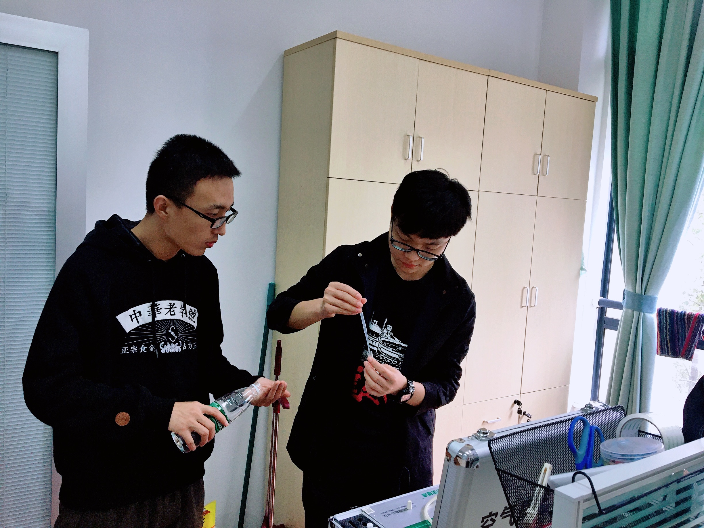 11月16日晚,巫秀玲等一行党员携带室内空气质量检测仪走进九号宿舍楼的308寝室。洪萍按照要求将设备组装完成,调试好参数及试剂,然后开始对寝室采样,在等待结果的同时,邹雅倩向寝室里的同学们普及了甲醛的危害以及减少甲醛的方法。半小时后洪萍将甲醛检验合格的结果告知了所在寝室,陈灼表示这次的测量甲醛活动让她更安心的住在寝室,并对测试人员表示感谢。随后,支部党员还分别对304、315、317、319寝室的甲醛浓度进行了测量,结果显示大多数寝室的甲醛含量没有超过规定最大值,个别寝室存在甲醛浓度超标。针对超标情况,陈露露建议寝室保持开窗通风,及时稀释甲醛;或者买些小盆栽放在寝室,吸收甲醛。