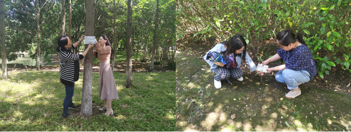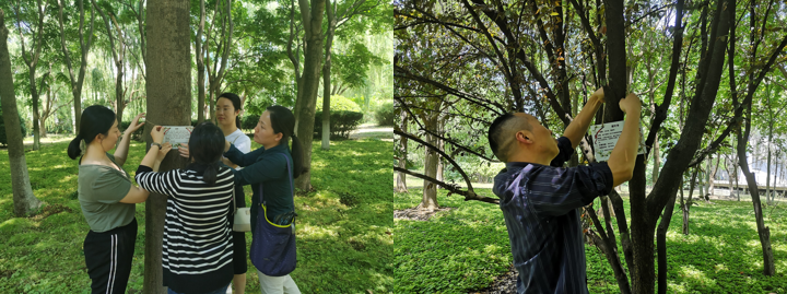晴日暖风生麦气,绿阴幽草胜花时。初夏正是植物生长繁茂之时,校园里的植物更是郁郁葱葱。环境科学系党支部的教师党员在每年的夏季节,都会带领员工进行校园生态系统的调查分析。教师党员们通过对植物的“身份”,如名称、分类以及外表特征如数家珍的介绍,揭开植物神秘的面纱,让大家对平日里“视而不见”的植物有了全新的了解。此外,教师党员们还结合专业背景,对每种植物的环境功效进行说明,让同学们深入学习植物对环境的诸多益处,如植物在光合作用时会吸收二氧化碳,排出氧气,对人体有益;许多植物能吸收有害气体,如甲醛、二甲苯等,能对粉尘、二氧化硫和臭氧有较强抗性,净化空气抗污染的能力强;并且植物根系有保水、固土的作用,防止水土流失。调查过程中,师生们一起关注植物的生长状况,积极交流研讨,有的同学还利用互联网的植物识别功能对植物进一步深入研究,整理并归纳校园植物名称、学名、环境功能等信息,并结合专业知识对植物的栽培养护提出合理化建议,为绿色校园建设添砖加瓦。