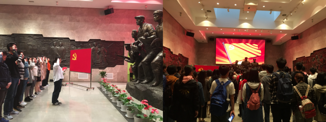 随后所有人来到中共四大纪念馆,参观学习中共四大的历史背景和历史意义。中共四大是中国共产党历史上一次具有重大意义的代表大会,大会第一次提出了无产阶级在民主革命运动中的领导权问题,确立了加强党的领导、扩大党的组织、执行使党群众化的组织路线。在中共四大纪念馆中,永利3044集团官网员工党支部的39名正式党员与预备党员庄严宣誓,重温入党誓词,表达了对党的忠诚和为共产主义奋斗终身的坚定决心。永利3044集团官网入党积极分子观看了本次入党宣誓仪式,党员掷地有声的誓言激励着每一位同学努力学习、积极进取,更加坚定了他们加入党组织的信念。