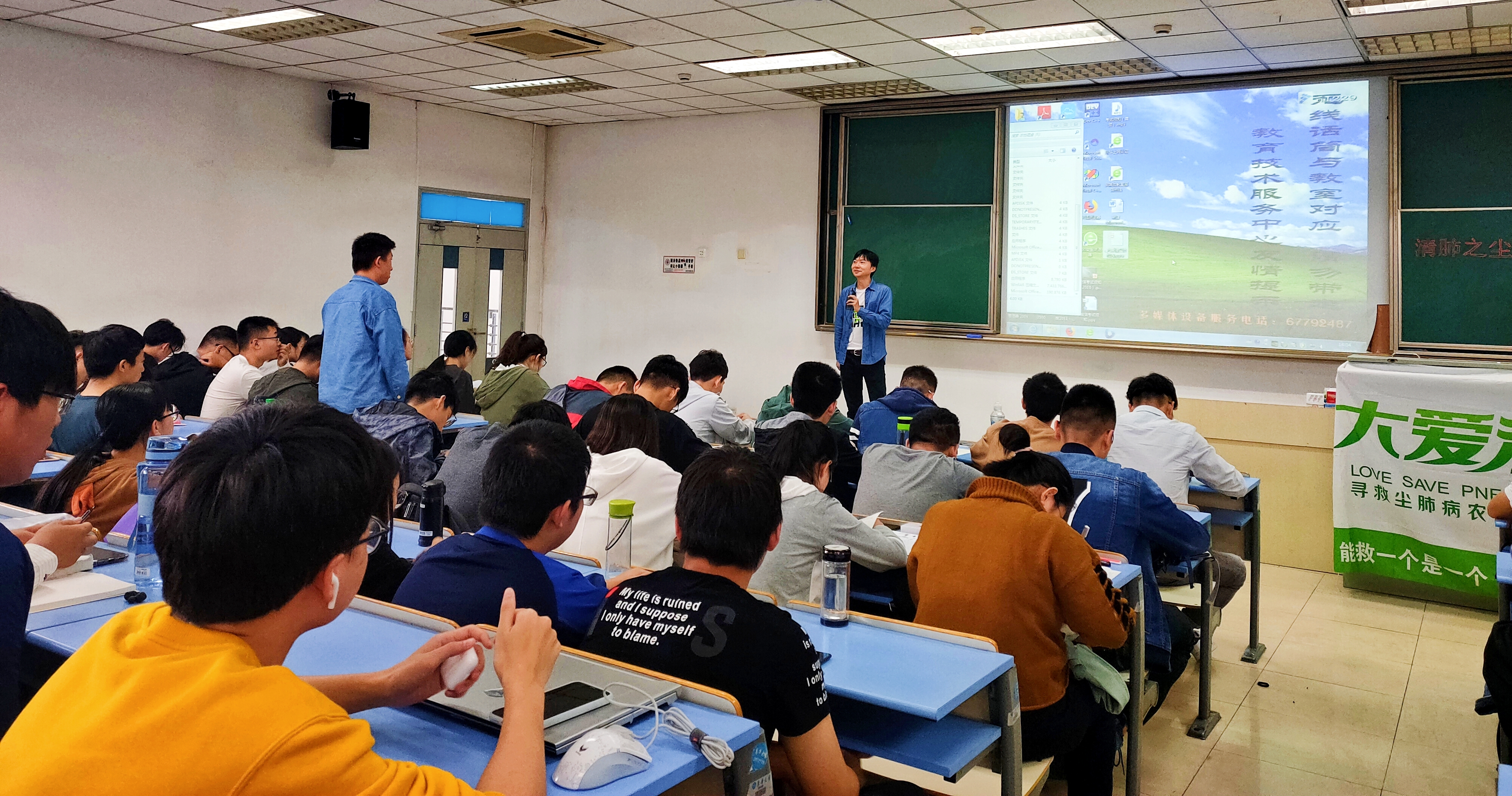 讲座从大爱清尘组织的介绍以及尘肺病简介的两个视频开始。陈季赟先结合自己参加大爱清尘公益活动的经历,和同学们分享了自己探访调查各个贫困地区的尘肺病农民家庭的故事和感悟,使同学们对尘肺病有了简单的了解。接着,陈季赟全面地介绍了大爱清尘的组织构架和救援工作,以及大爱清尘公益活动的作用及意义。此外,陈季赟介绍了当今全世界范围内尘肺病的情况。同学们在讲座结束后提出自己对尘肺病的相关问题,陈季赟对此进行了详细的解答,加深了同学们对于大爱清尘组织以及尘肺病知识的了解。