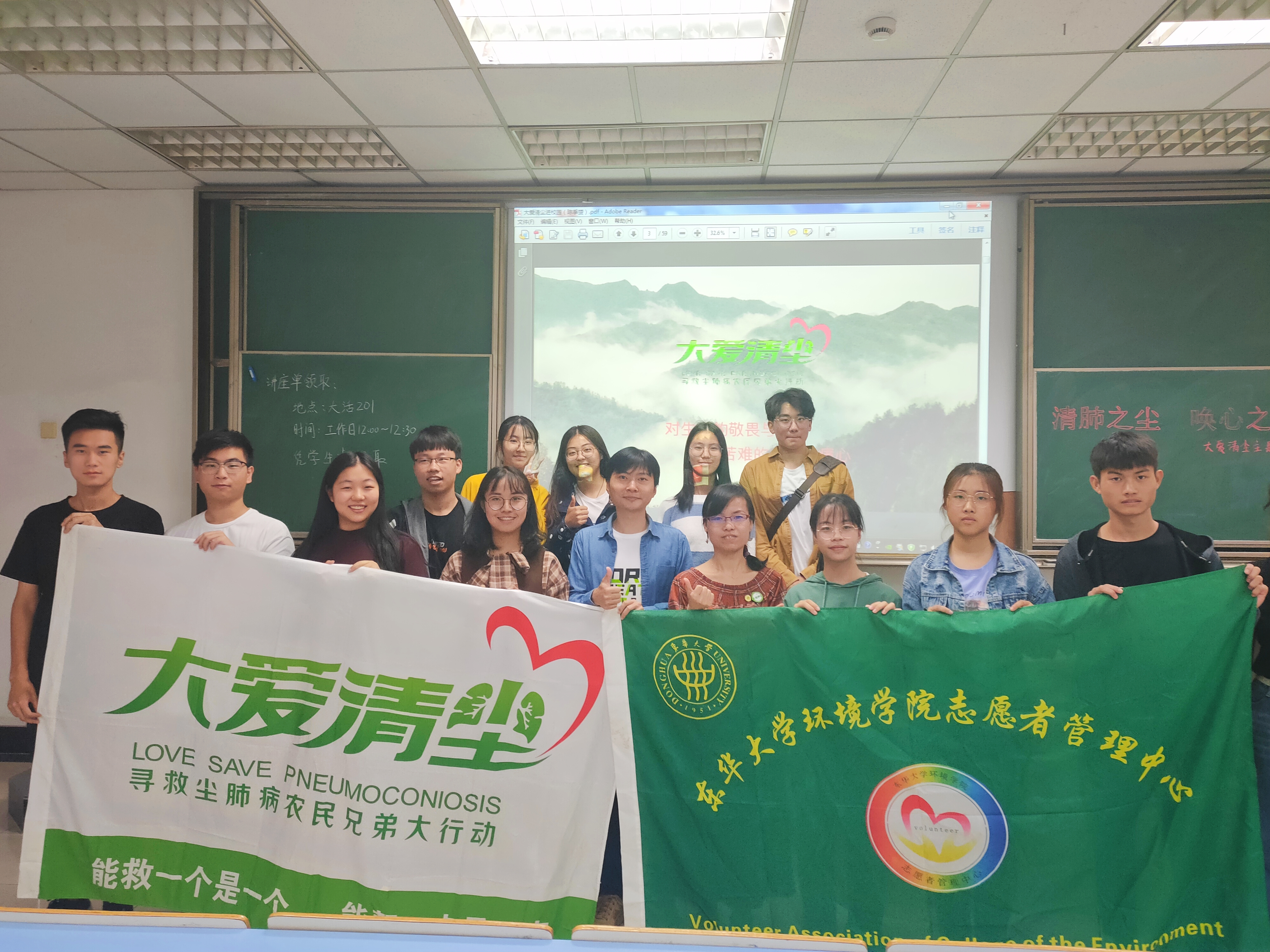 近日,永利3044集团官网志愿者管理中心邀请大爱清尘上海区主任兼官微主编陈季赟来访东华,在松1229教室为全校师生做了关于大爱清尘讲—关爱尘肺病人的专题讲座,来自环境、人文等公司的200多名同学参加了此次讲座。