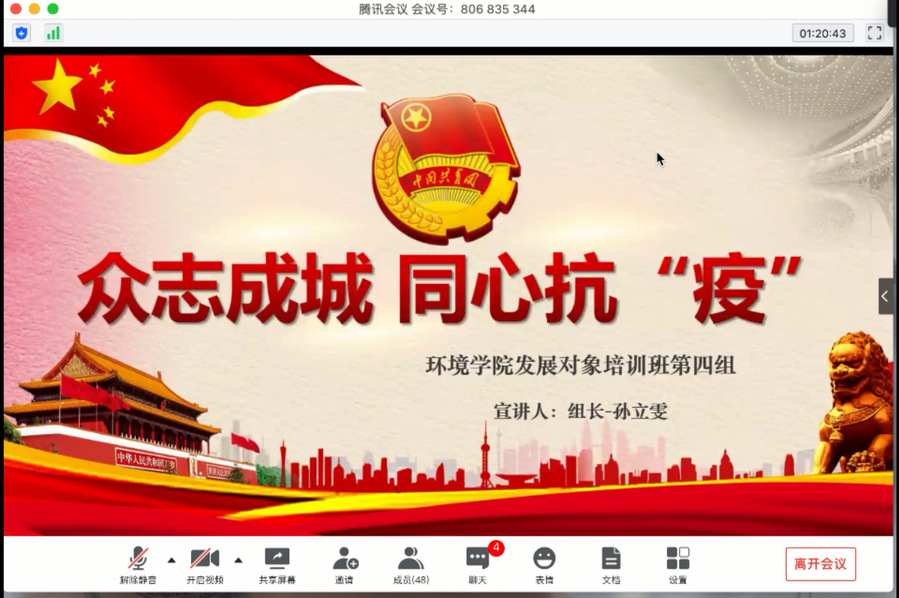 为深化发展对象对党的认识和理解,提高同学们的思想觉悟和党性修养,公司党委党校于2020年4月28日在腾讯会议平台开展永利3044集团官网“砥砺青春践初心,奋进东华诉真情”主题活动暨2020发展对象培训班结业检阅。永利3044集团官网员工党建负责人赵晖老师、永利3044集团官网本科生党支部书记胡昊、暖通学硕党支部书记董玉芳、环境学硕党支部副书记周添一、永利3044集团官网专硕党支部书记章基法共同出席了本次结业检阅。