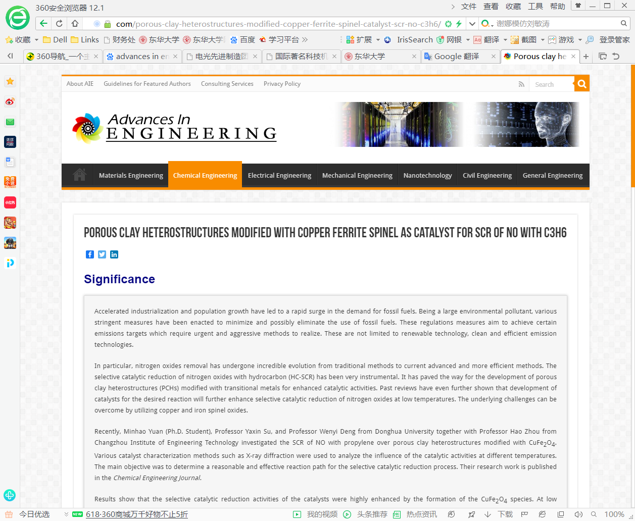 Advances in Engineering报道链接:https://advanceseng.com/porous-clay-heterostructures-modified-copper-ferrite-spinel-catalyst-scr-no-c3h6/