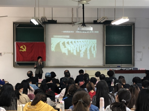 活动中,上海东方讲坛特聘讲师邓玉萍老师给大家上了“眺望长征”主题党课。邓玉萍老师是原红四方面军老战士邓志云的女儿,曾十二次重走长征路,被誉为“新长征精神代言人”。为展现长征独特的精神魅力,邓老师生动地再现了发生在长征路上可歌可泣的伟大故事,她从踏征程、访红军、祭英烈、话传承四个方面给大家分享了自己十二次重走长征路的经历与感悟。一个个鲜活的长征故事引起了现场同学们对长征历史事件的真情追忆,产生了对伟大长征精神的深情致敬。她勉励全体同学不忘初心,发扬长征精神,走好新时代长征路。