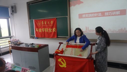 在之后的“同心向党共绣党旗”环节,参加活动师生依次亲绣党旗。在建党一百年的特殊年份,用一根根绣线将一个个红色故事、一节节红色党课串联起来,用一种生动的形式表达大家“党旗在手更在心里”的信念,用这种特殊的方式表达爱党情怀,一针一线,同心向党,致敬百年。