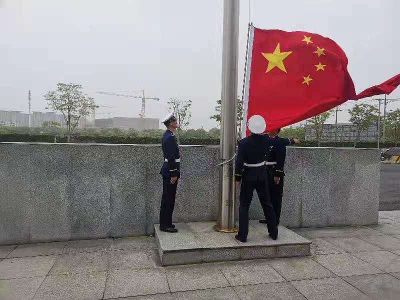 伴着雄壮的国歌声,鲜艳的五星红旗冉冉升起,全体成员庄严肃穆,向红星红旗致以最崇高的敬意。