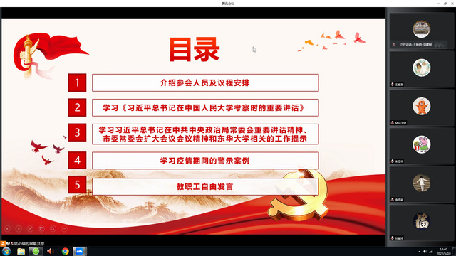 为深入学习贯彻习近平总书记的重要讲话精神,永利3044集团官网组室党支部于5月10日通过线上会议形式组织部门教职工开展政治理论学习,旨在统一思想,坚定信心,抓好疫情防控,筑牢抗疫防线,加强疫情期间师德师风建设。会议由支部组织委员王艳丽老师主持。