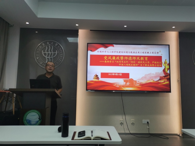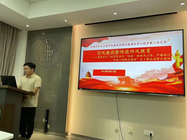 为进一步加强教师队伍的党风廉政建设,涵养师德师风,以实际行动迎接党的二十大的胜利召开,9月13日下午,永利3044集团官网建环系党支部开展“党风廉政暨师德师风教育”集体学习讨论会。会议由支部书记贾洪伟主持,党员及非党员教师共同参加学习。