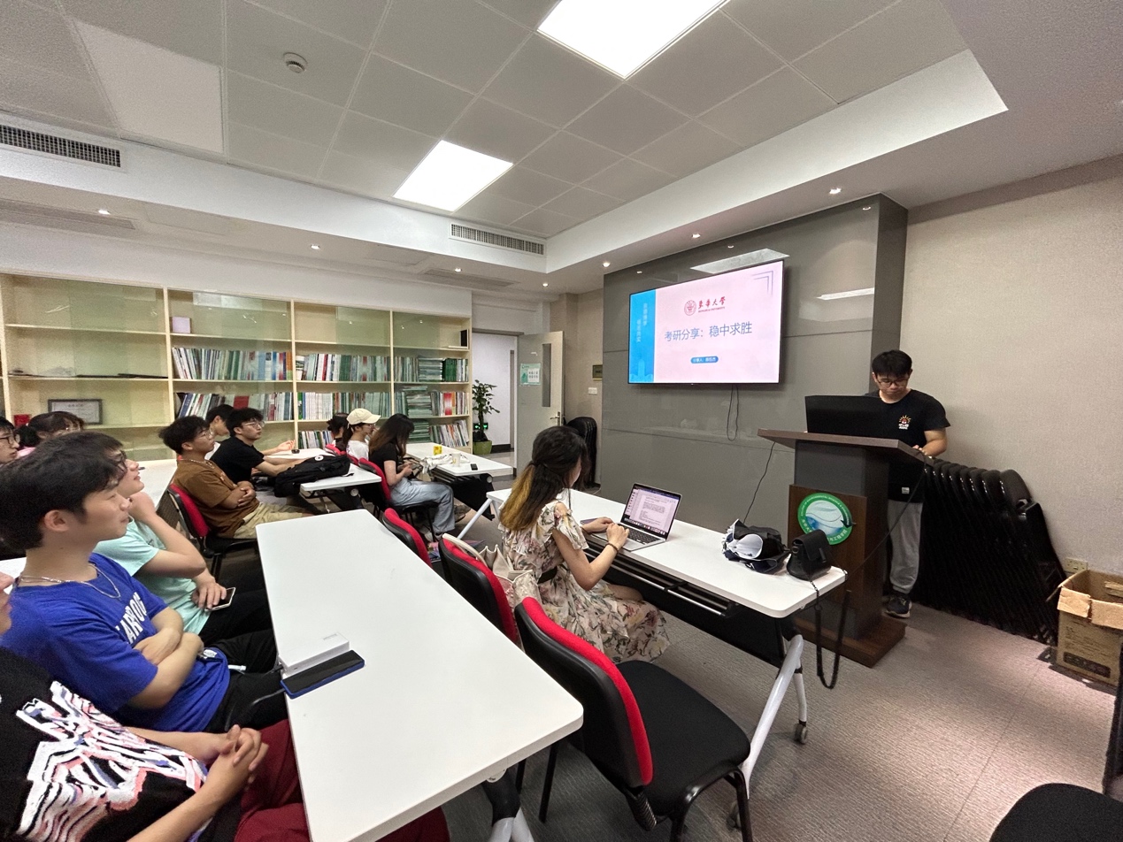 首先,陈伍杰同学进行了以“稳中求胜”为主题的考研经验分享,向大家详细介绍了永利3044集团官网的夏令营和优才计划以及考取本校的优越性,分享了自己的考研具体规划和对每个科目细致的复习计划,真诚动人的话语赢来台下师生阵阵掌声。