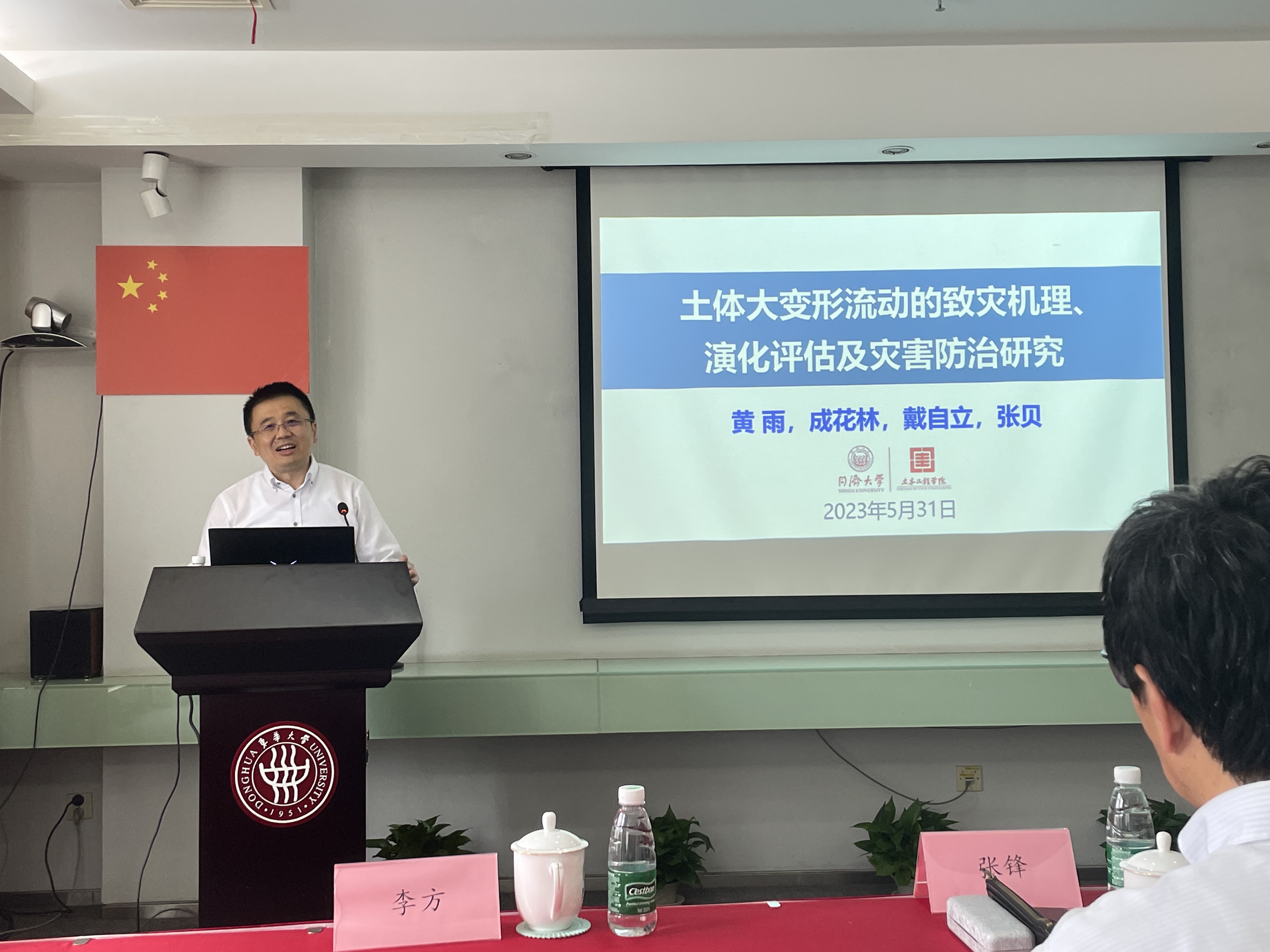 此次学术讲座在3044永利集团集团图文信息中心第三会议室举行,讲座中,黄雨教授围绕我国西南山区易发的滑坡,泥石流等土体大变形流动灾害,详细阐述了此类土体大变形流动现象规律、力学行为和致灾机制,并进一步对土体大变形流动过程高性能计算模型构建以及灾害定量评估方法做了详细介绍,最后,提出了针对此类灾害的防治工程建议。