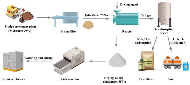 近日,公司在市政污泥快速免热干化研究方面取得重大突破,并在环境领域著名刊物《Water Research》上发表研究成果“Three birds with one stone: sewage sludge deep-drying in 1 hour using secondary aluminum ash to fabricate bricks”, 266(2024)122346。该研究针对当前市政污泥脱水难、成本高的突出问题,提出“以废治废”理念,创新性利用金属废渣研制出快速干化剂,通过自热和造孔效应实现市政污泥1小时免热深度干化(含水量从75%降至35%),并将干污泥制成免烧砖,实现资源化。该工艺较传统工艺具有效率高、成本低、无害化彻底等优势,有望为污泥快速干化及金属废渣资源化提供有效解决方案,具有广阔的应用前景。目前,该技术已在浙江、山东、江苏等地的市政/印染/化纤污泥上成功中试。